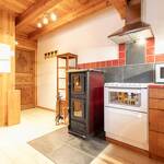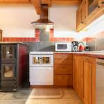 Cuisinette équipée : four, micro-ondes, lave-vaisselle, plaques de cuisson vitro céramique, frigo, vaisselle, Poêle à bois (bois fourni).
