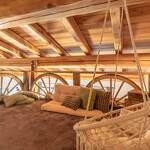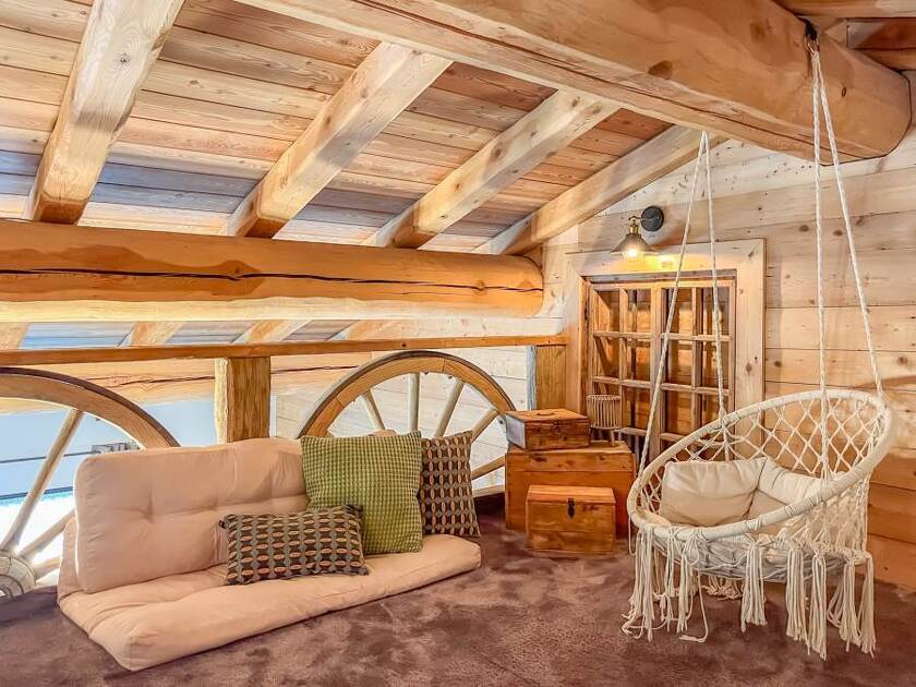 - a mezzanine area above the living room, equipped with 2 2-person mattresses,