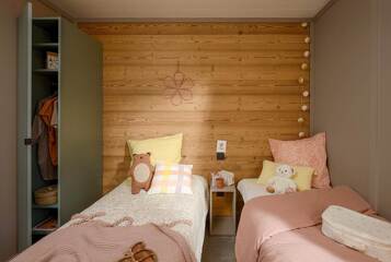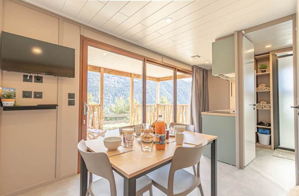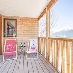 Chalet (HLL) 4 personnes de 32 m², orienté Sud, terrasse équipée (table de jardin, chaises et transats), très belle vue sur la montagne.