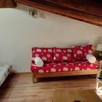 Gite sur 2 niveaux comprenant au rez-de-chaussée (côté cour) une entrée commune avec le gite 73G23168. 1er étage (l'été, accès de plain-pied depuis la rue) : séjour-cuisine, une salle d'eau (douche), WC séparé. 2ème étage avec demi-niveaux : un salon aménagé sous combles (1 canapé convertible 2 personnes, télévision et poêle à bois), 1 salle de bains (baignoire), WC séparé, 4 chambres avec sous-pentes (1 lit 2 personnes 140x190 cm, 1 lit 1 personne 90x190 cm / 1 lit 2 personnes 140x190 cm / 2 lits 1 personne 90x190 cm / 2 lits 1 personne 90x190 cm). Surface totale au sol : 120 m² parties mansardées comprises. Lave-linge en commun dans un local dans l'entrée. Espace extérieur partagé (table et chaises par gite).