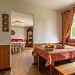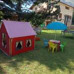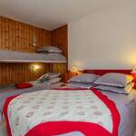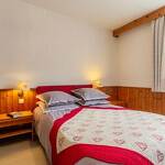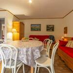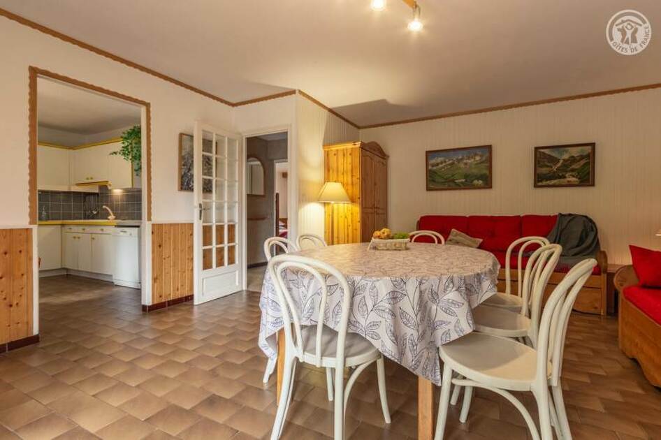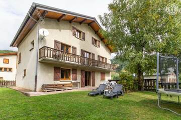 Au rez-de-chaussée d'une maison comprenant l'appartement de la propriétaire et une autre location touristique. De plain-pied : séjour-salon (2 lits 1 personne gigogne 90x190 cm + 1 lit 1 personne 90x190 cm), cuisine séparée, chambre (1 lit 2 personnes 140x190 cm + 2 lits 1 personne superposés 90x190 cm), salle d'eau (douche + wc). Accès au jardin partagé (balançoire, trampoline, barbecue et four à pain, cabane enfant) avec terrasse. Local à skis et à vélos commun, buanderie (lave-linge et sèche-linge communs). 2 places de stationnement privatif devant la maison.