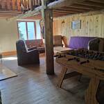Un grand séjour avec canapé, baby foot et une cheminée