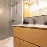 - une salle de bain avec WC, douche, vasque et ses rangements (sèche-cheveux mis à disposition)